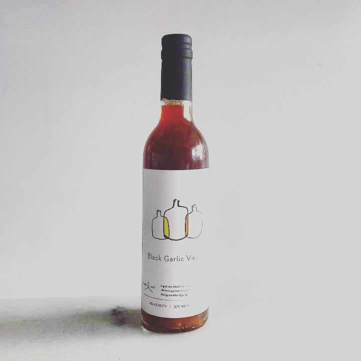 An almost completely savory vinegar, the fermented garlic takes on a caramelized sweetness with a very rounded, mellow and brown buttery roasted garlic flavor. It won't hit you with the spiciness of raw garlic, but more of a heady, malty undertone with low acidity. Truly a unique product, handcrafted in PA. 375mL.