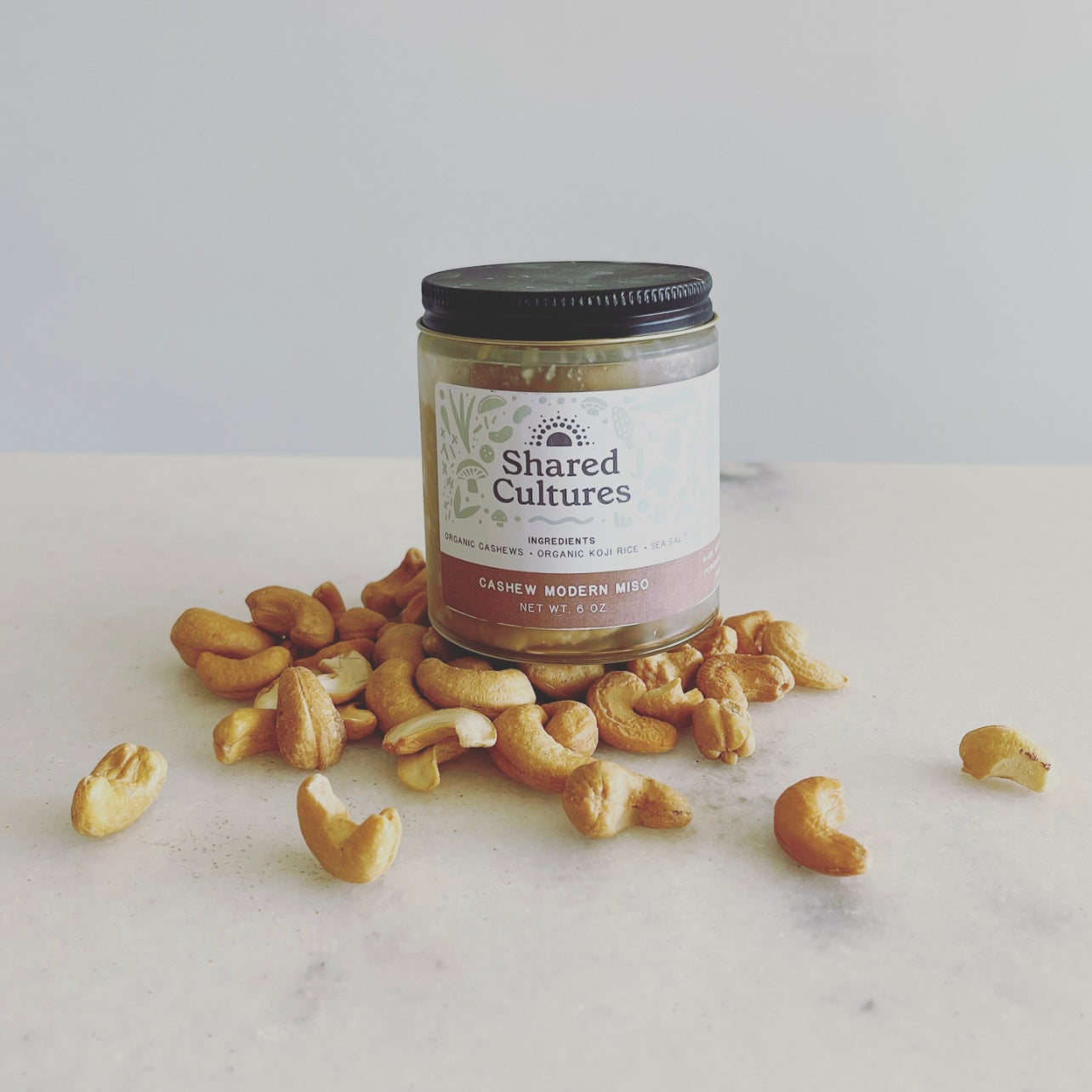 A modern miso fermented with California heirloom koji rice and organic cashews. Reminiscent of a sharp parmesan cheese balanced with a hint of sweetness, this miso is great on its own as a spread, in soups, baking applications, dressings, marinating proteins or made into a sauce with some butter and garlic. 6oz jar; organic cashews, organic koji rice, sea salt. *Contains tree nuts*